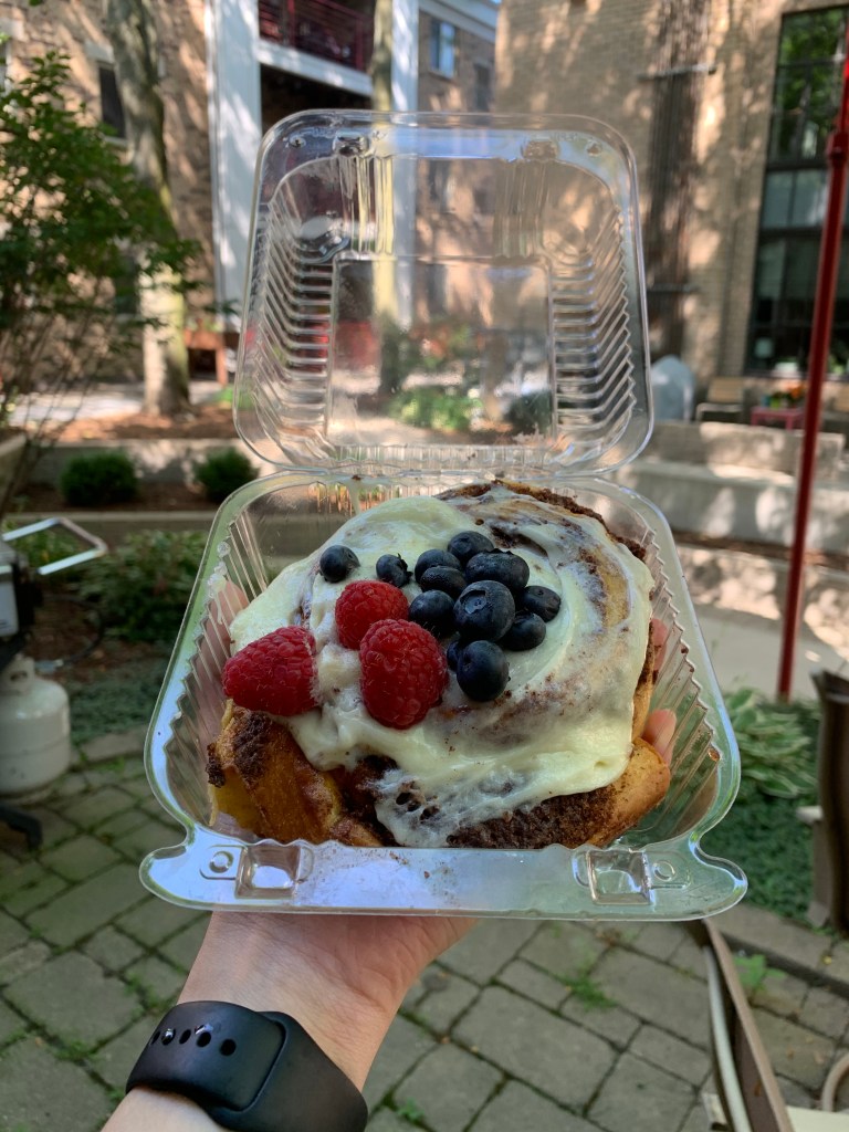 Found on Willy Street, the cinnamon rolls have a glaze as well as a frosting that work well together. They also have some delicious breads, I recommend the baguette and focaccia.