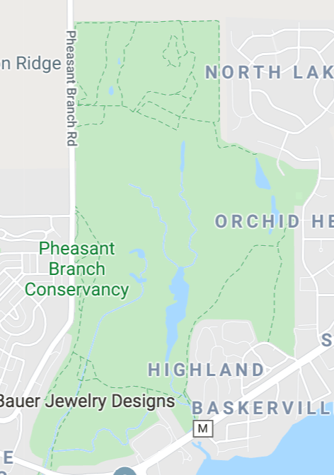There are a great variation of trails through this 160 acre area. My favorite is the trail through the forest area, starting at century blvd and walking either direction from there. They do have a few small parking lots and there are some access spots near street parking. It can get very buggy!