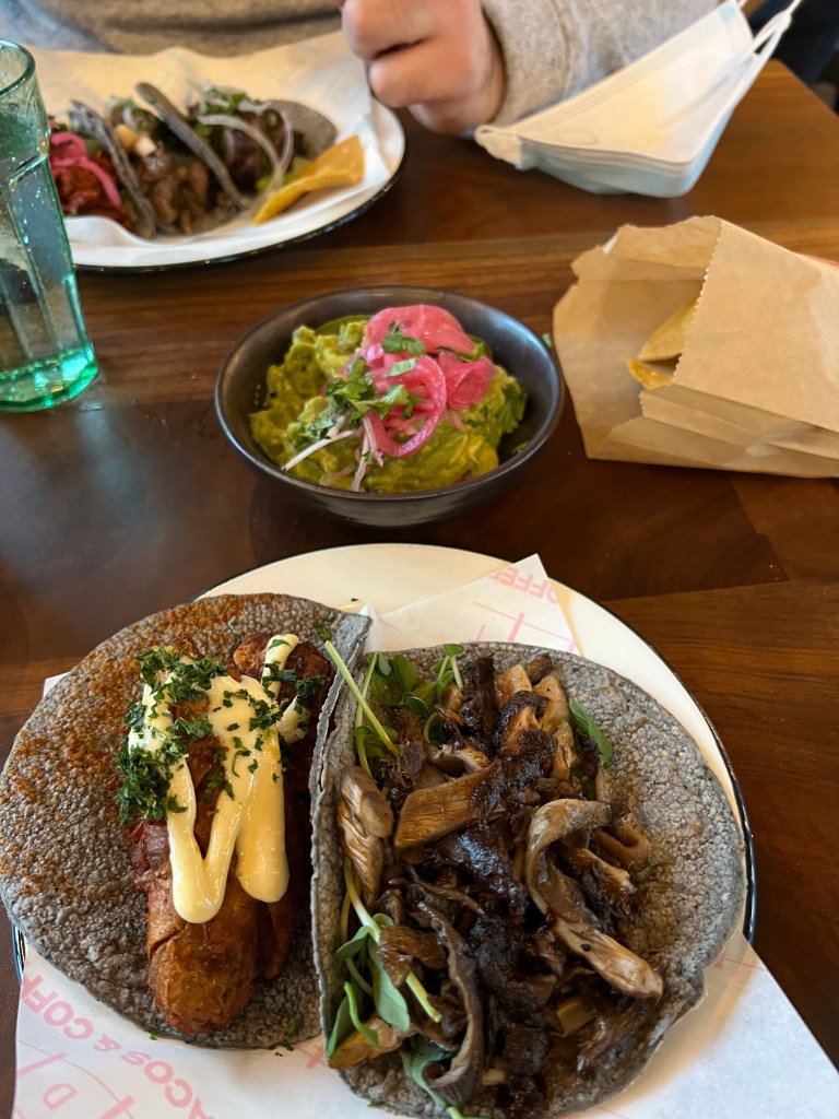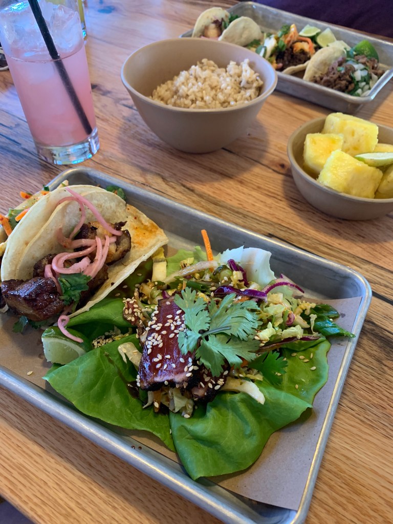 A New spot on Willy Street, with a great vibe! I highly recommend the Mango braised pork tacos (bottom). The baja shrimp tacos (top) were also delicious.